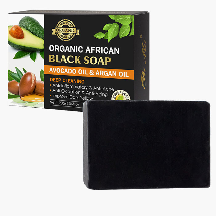 Organic African Black Soap Deep Cleaning Anti-Oxidation Anti-Aging Repair After Sun Exposure Avocado Argan Oil Soap.